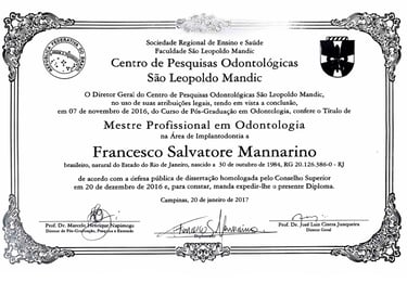 O Dr. Francesco possui anos de experiência em bucomaxilofacial, com especialização em diversas áreas da odontologia.
